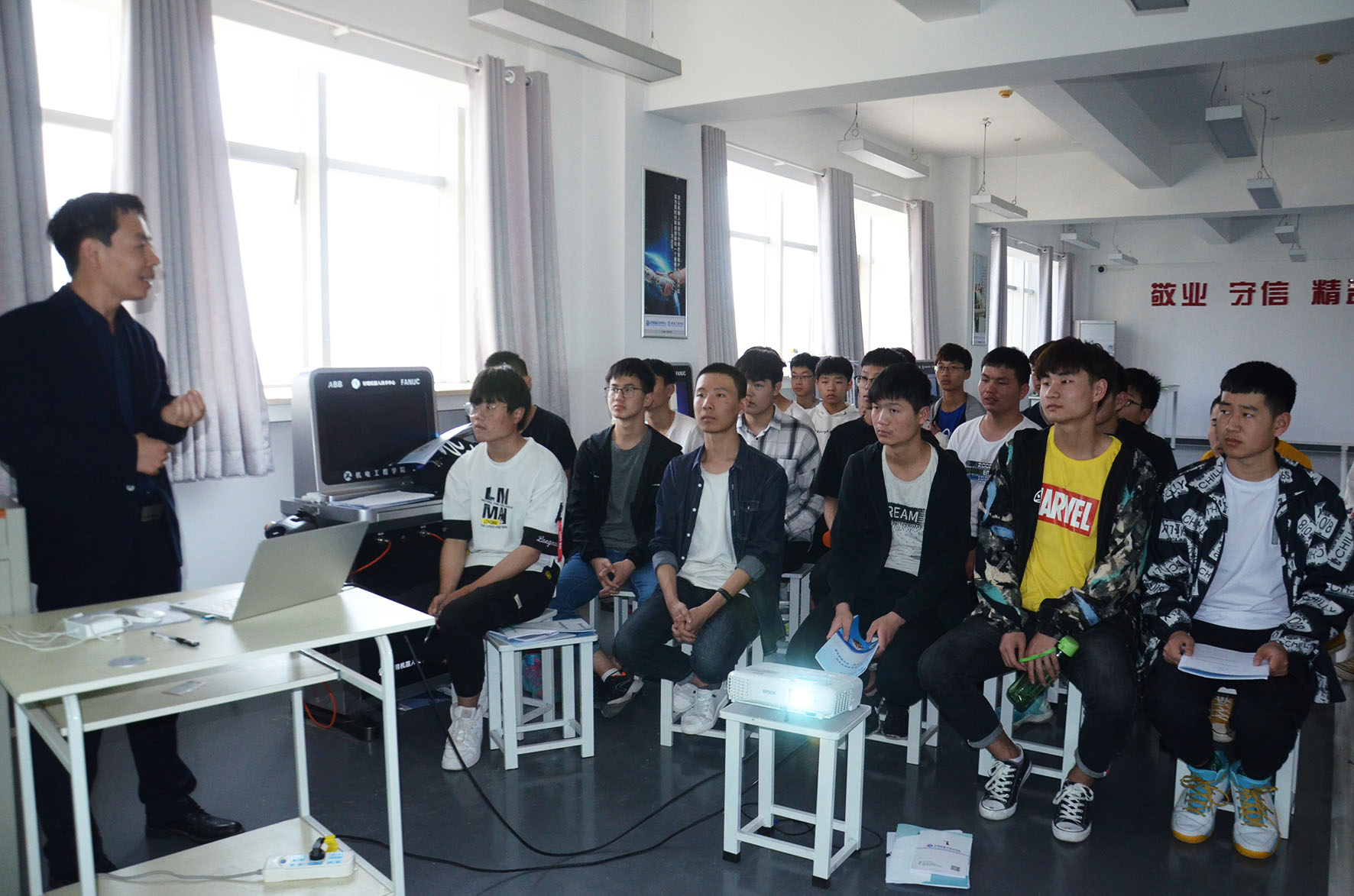 本次校外实训是该校人才培养方案的重要组成部分,是一个重要的实践教学环节。学生本次校外实训要达到的目标是:让学生接触到更多类型的机器人产品,巩固工业机器人离线编程、在线编程和基本维护保养的知识;提升工业机器人基础技术操作和在线编程的能力;使学生能够完成工业机器人工作站基本的安装调试及技术支持工作。
