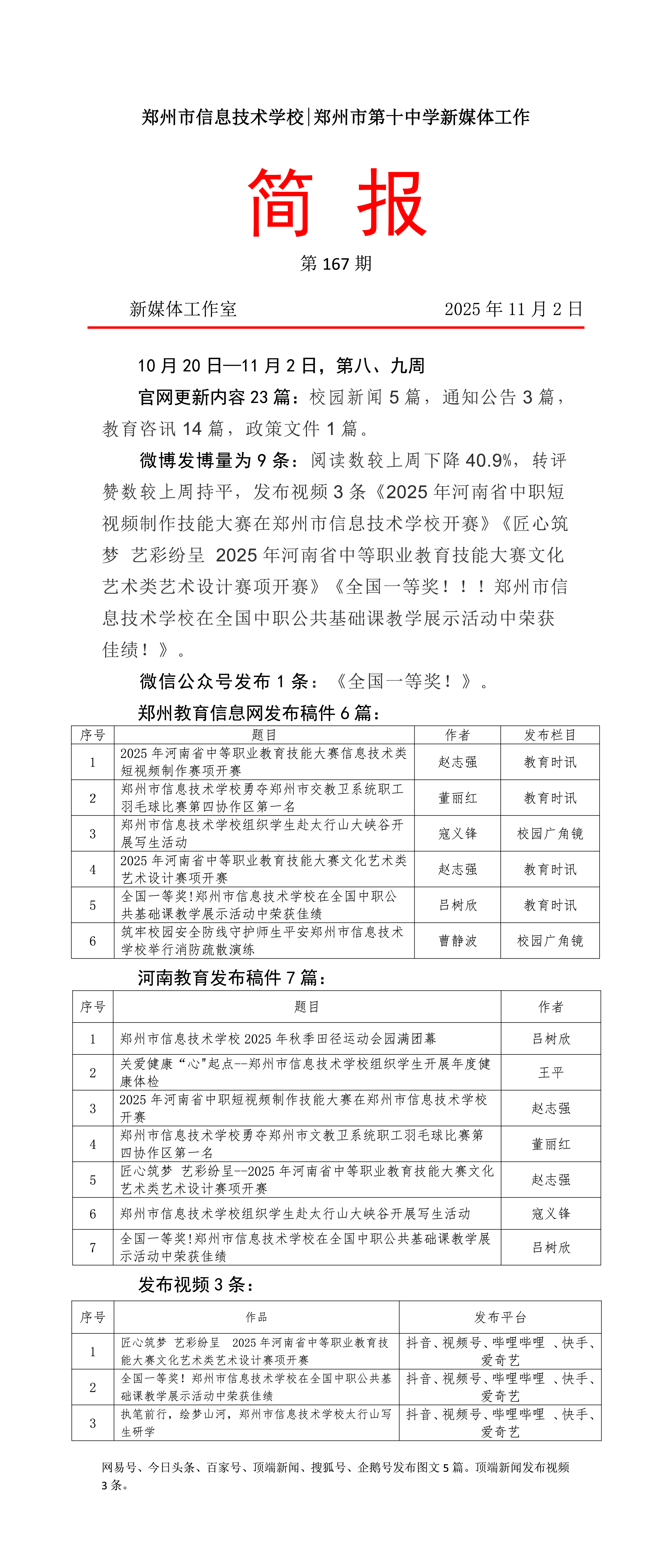 新媒体工作简报第167期(10.20~11.02)